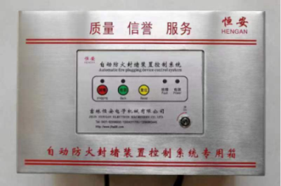 (1)當(dāng)火災(zāi)報(bào)警后(根據(jù)客戶要求可以聯(lián)動,也可以獨(dú)立),卸料機(jī)構(gòu)自動啟動工作,卸料機(jī)構(gòu)完成卸料后,自動停止傳送帶工作,傳送帶停止工作后(同時(shí)卸料機(jī)構(gòu)恢復(fù)初始狀態(tài)),自動防火封堵裝置自動啟動封堵工作程序,開始封堵,控制板上封堵紅燈亮起同時(shí)警示燈鳴笛報(bào)警,當(dāng)封堵完畢時(shí),紅燈熄滅同時(shí)警示燈鳴笛報(bào)警停止。